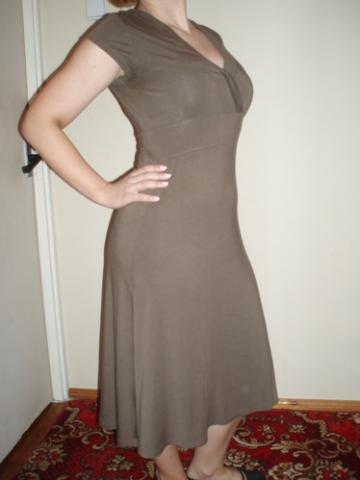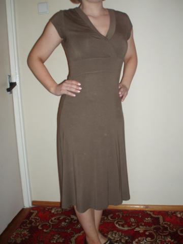 trikotažinė su sexy dekoltė, kurią aš mažindavau įsisegdama sagę :) Suknelės dydis parašytas L, tačiau aš 36-38 dydį nešiodama va kaip su ja atrodau :) suknelė nešiota, tačiau jokių defektų neturi. tiesa, gražiau atrodytų ant aukštesnės merginos.