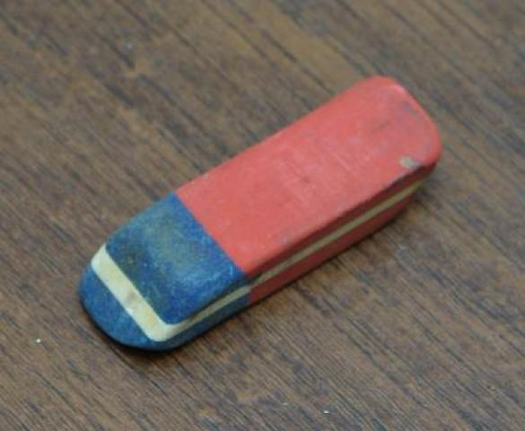 Kiek naudotas. Bet dabar, kai į mokyklą neinu, tai niekada nebūna reikalingas. Skirtas trinti pieštuką ir tušinuką.