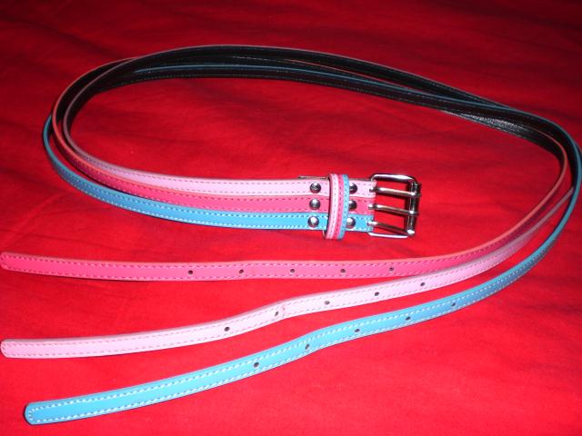 Trispalvis diržas, užsisega trimis mažomis sagtimis.