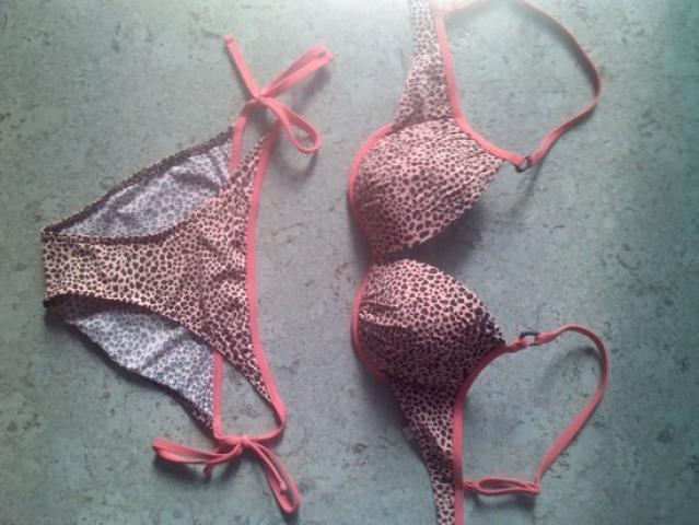 Labai grazus tigrinis Triumph maudimukas, leopardiniai rastai, orandzinis, su krutines pakietinimais, graziai ja iskelia. super ziurisi ant kuno. NAUJAS . M, 75C