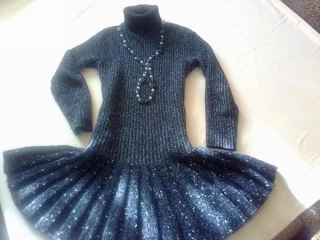Trumpa, megzta, juodos spalvos suknelė, S - M dydis
