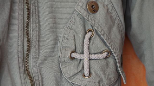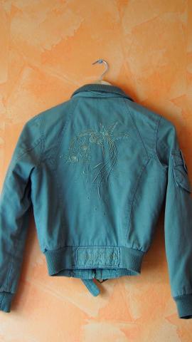 Trumpa rudeninė chaki striukė. Atrodo tvarkingai. Defektų nėra - tik šiek tiek matosi "gumuliukų" ant kalnieriaus. Dydis S. Spalva tokia kaip paskutinėje nuotraukoje.