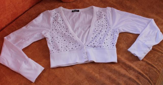 Parduodu trumpa, grazu, balta nenesiota megztuka, ilgomis rankovemis. Su blizgiomis akutemis.