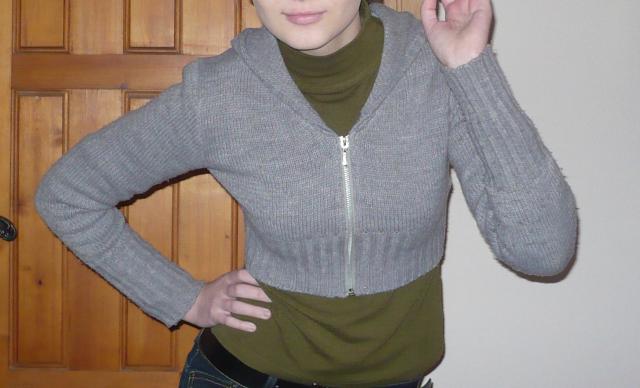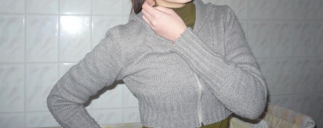 trumpas pilkas megztukas su kapisonu