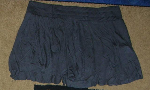 trumpas pilkas sijonas su kisenemis is bershka, nuotraukoje susiglamzes ;D M dydis, bet turbut tiktu ir S.