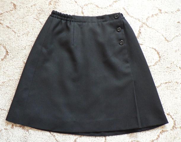 Vienetinis juodas (ryškesnės nei nuotraukose spalvos) sijonukas paaukštintu liemeniu. Tulpės formos, su skeltuku. Tiks kaip uniforminis.