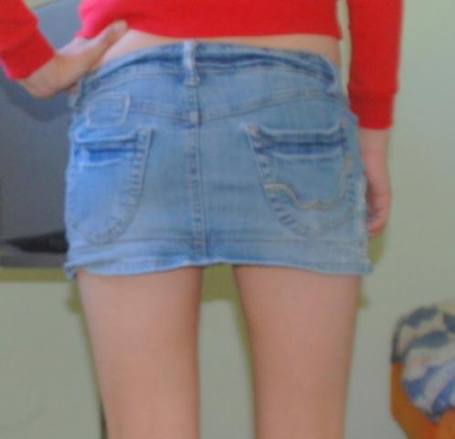 Trumpas džinsisnis sijonas. Tikrai trumpas.;D Tinka XS-S nešiojančiom merginom.