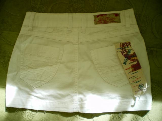 Baltas, trumpas, grazus sijonukas, kadangi pati nelabai nesioju trumpu sijoneliu, tai gal jums pravers, seip atrodo ant zmogaus labai graziai :) Visiskai naujas, ne kartelio nenesiotas, nuotraukoje ir etikete matosi. Raso, kad dydis 26, bet as nesioju 36 ir man tinka, galetu net siauresnis but :)