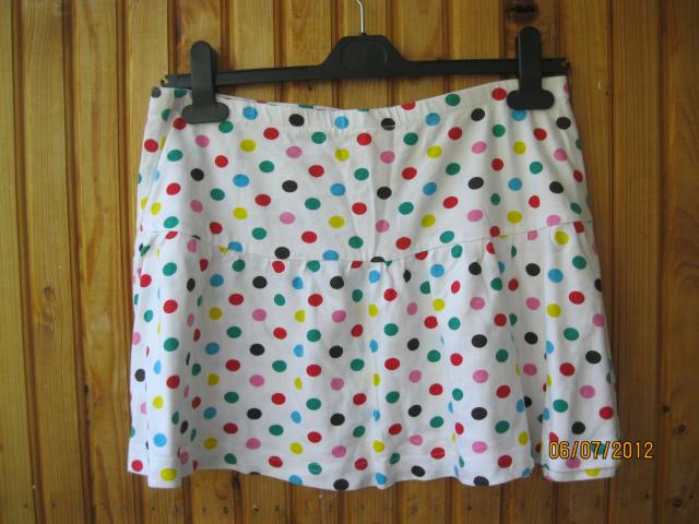 Trumpas, paprastai uzsivelkantis sijonukas 12-14 dydzio arba 40-42 dydzio.100% medvilne,labai smagiai nesiojasi.