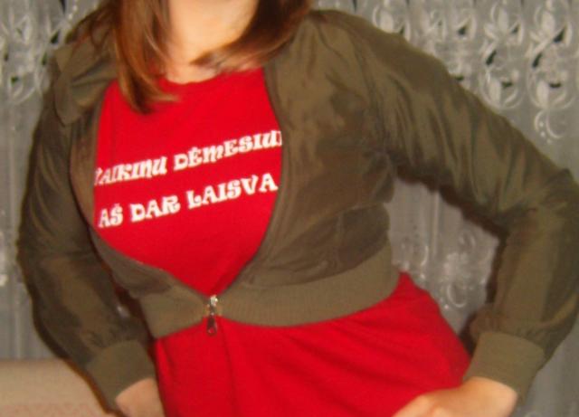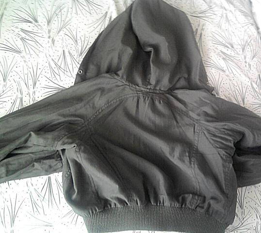 tamsiai žalias trumpas švarkelis, gali būti treningas . tinka smulkaus sudejimo panelei