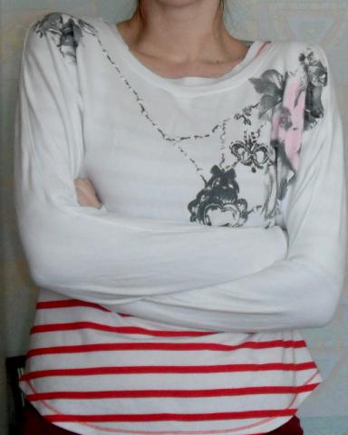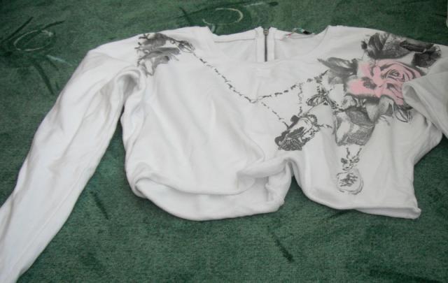 Naujas, tačiau nepritiko man. Baltas trumpas trenigiukas, nugaroje užtrauktukas, dydis nuo M-XL