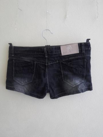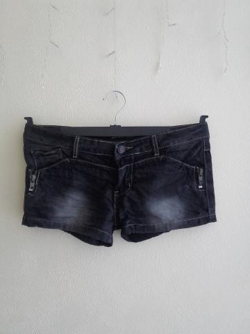 Trumpi džinsiniai šortai. Tamsus blukintas džinsas, masyvios užtrauktukų detalės.