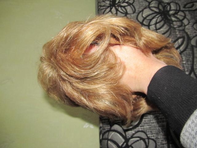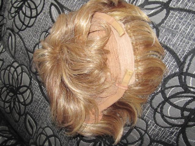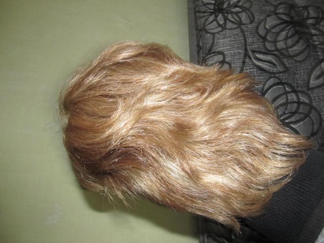 Mažai naudotas trumpų šviesių plaukų perukas. Nuotraukoje jis neiššukuotas todėl susivėles nuo ilgo gulėjimo spintoje. Išplovus ir iššukavus jis atrodys kaip naujas.