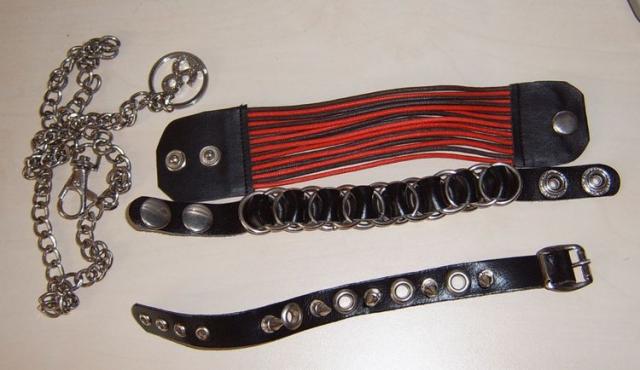 Trys apyrankės,grandine-(rez.),piniginė,lankelis(foto viduj)