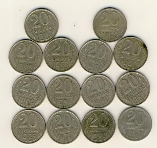 TSRS 20 kapeikų - pagal metus