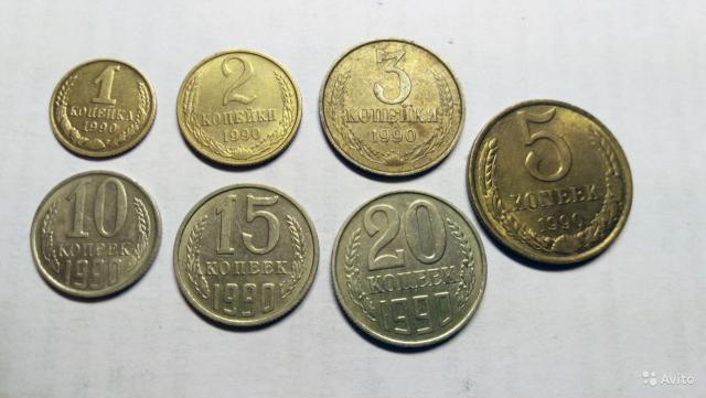 112 monetų - TSRS kapeikos: 1, 2, 3, 5, 10, 15 ir 20 pamečiui nuo 1977 iki 1990 metų imtinai. Yra ir kitokių komplektų bei kitų metų monetų.