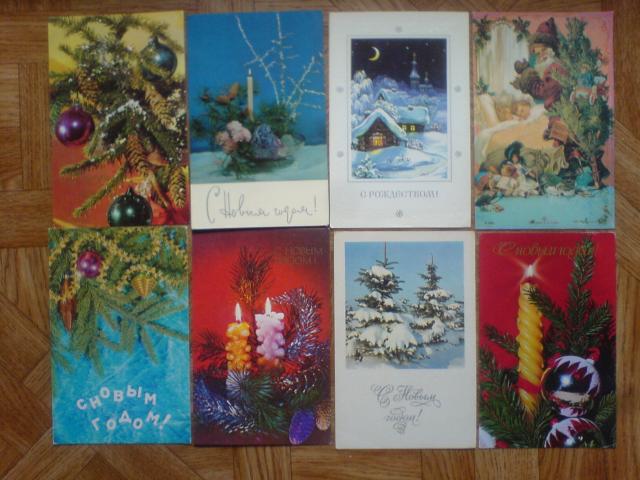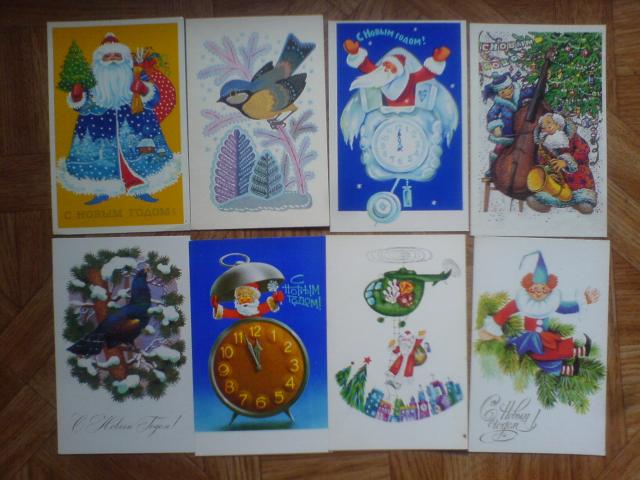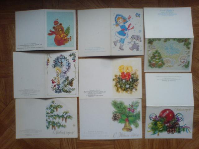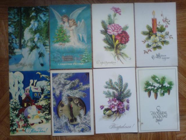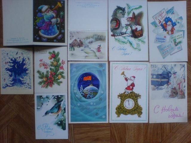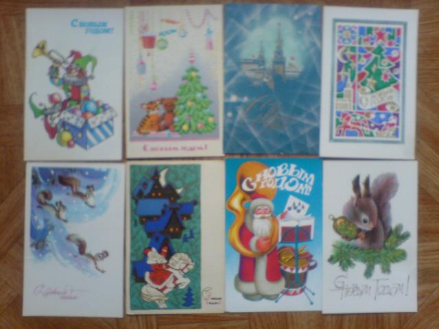 Sveiki,mane domina: TSRS Naujametinės atvirutės, vaikiška tematika, kosmosas, šventės ir kt., gali būti prirašyti bei po keletas.