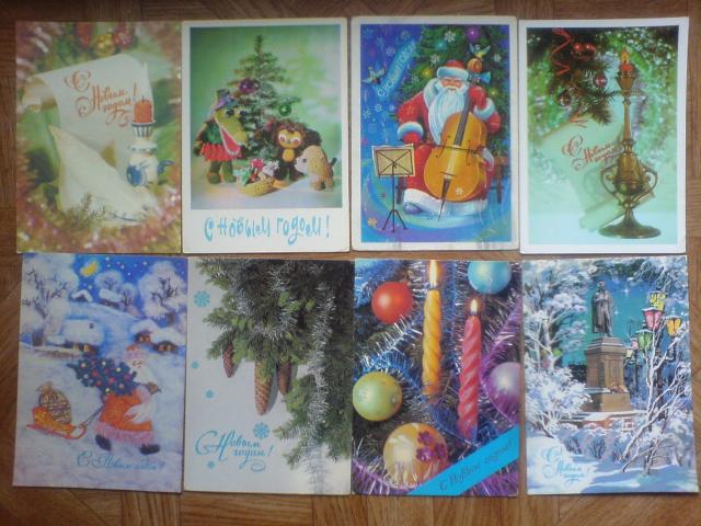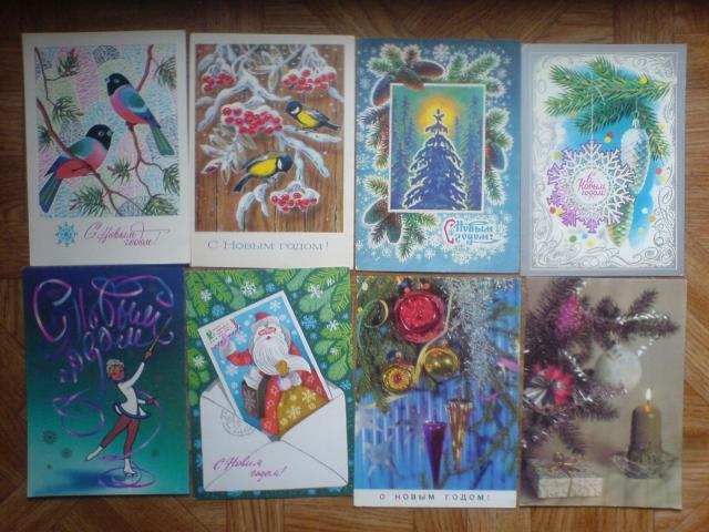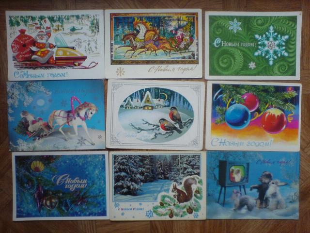 Sveiki,mane domina: TSRS Naujametinės atvirutės, vaikiška tematika, kosmosas, šventės ir kt., gali būti prirašyti bei po keletas.