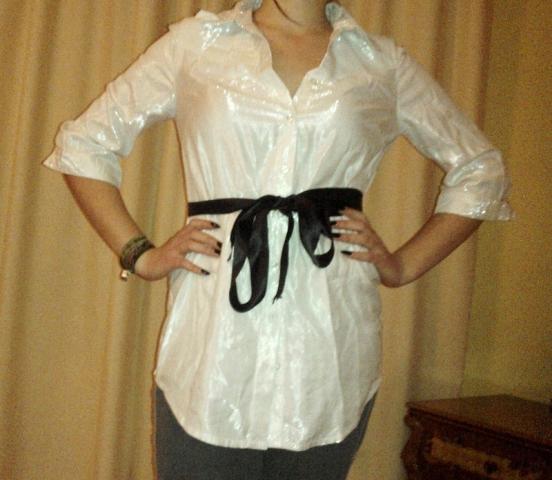 tunika su rankovėm iki alkūnių,gražiai atrodo su diržu,blizgi balta medžiaga