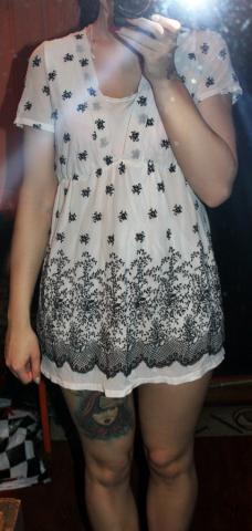 pati nenešiojau, bet iš padėvėtų. labai graži, bet aš turbūt turiu per daug drabužių. mano ūgis 1.65 ir išeina kaip trumputė suknelė. Žemesnėms panelėsms bus ilgesnė
