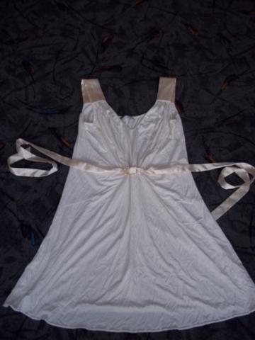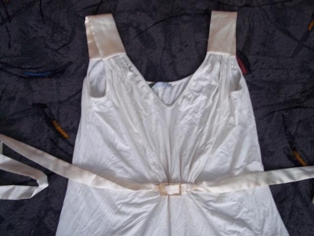 Grazi trikotazinė tunika, su silkiniu kaspinu aplink juosmenį ir tokiom pačiom petnešom, rašo dydį L bet tiks ir M :)