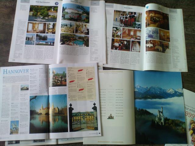 magnificent hospitality in germany 1998/99 - 112p., Furstliche gastlichkeitin deutschland 98/99 -112p., the german city experience 1998/99 (sis pats naudingiausias, aprasyti visi didesni vok. miestai) - 114p., gruppenreisem in deutschland 1997/98 - 192p., willkommen in deutschland - 44p., kultur erleben 1999 - 58p. su vokietijos zemelapiais (a4), yra senu reklamu.
