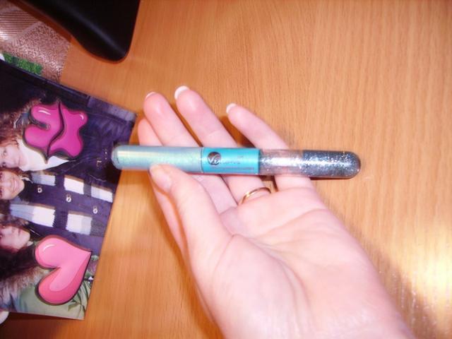 zalios spalvos blakstienu galiuku tushas(arba ne galiuku) ir akiu apvedimui blizguciai. tai buvo naudota, bet blizguciu nelabai daug nes skystis ju garuoja.