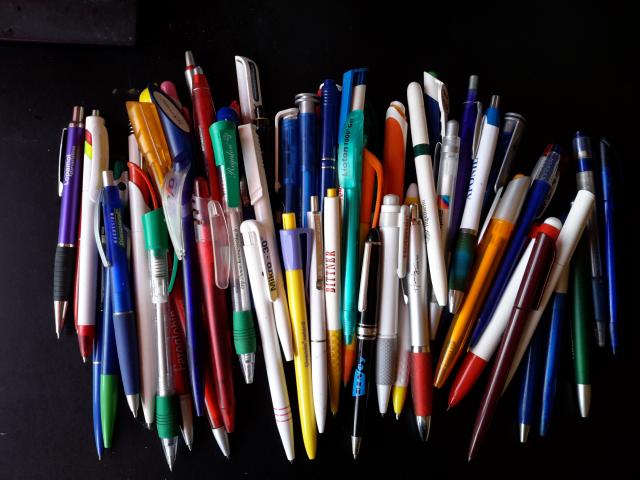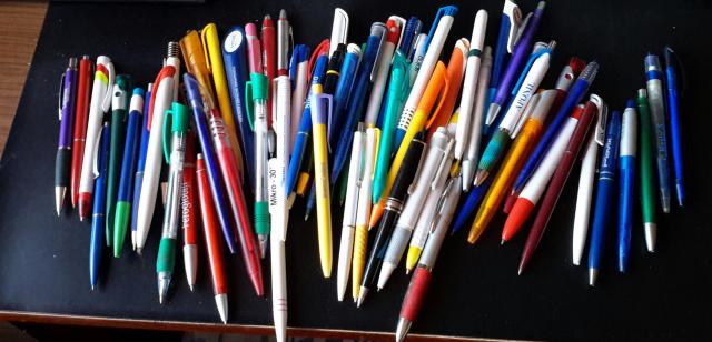 66 vnt. plastmasinių tušinukų. Įvairūs. Mechanizmai veikia. Kad rašytų reikia keist širdeles.