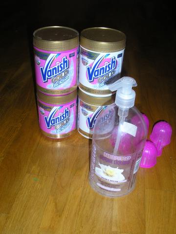 Tusti indeliai nuo Vanish ir kauseliai dozvimui. Dozatorius skystam muilui 1litro talpos.