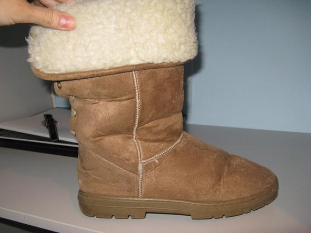 ugg stiliaus batai turi defekta, vieno bato kulnas truputi suskiles, bet sausu oru galima nesioti, arba reikia pasitaisyti