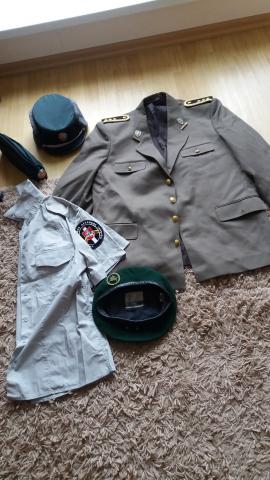 Moteriški pasieniečio marškiniai. Vyriškas senas švarkas. Kepurės atiduotos.