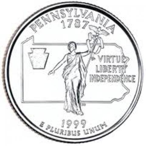 United States Of America quarter dollar pennsylvania 1787,1999.Yra 2 monetos..