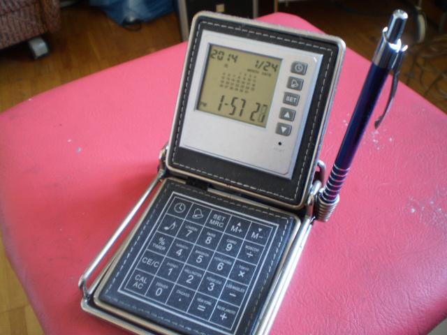 Universali Uzrasykle-Vizitiniu korteliu laikykle- Laikrodis-Zadintuvas-Kalendorius-Kalkuliatorius- su odos elementais...