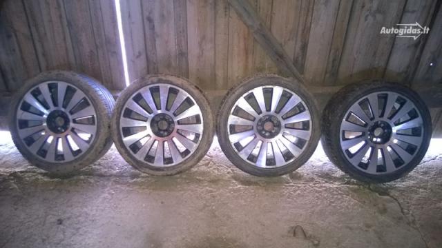 Universalūs lieti ratai su padangomis r18(padangos labai žemo profilio, vienam sezonui), buvo uždėti ant audinės, bet tinka ir VW. Fotografuoti neplauti. Mainų kaina didesnė.