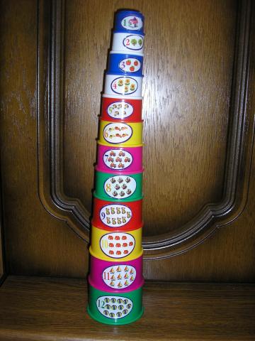 Universalus zaisliukas -indeliu piramide Piramide pastatoma is skirtingo dydzio indeliu, taip pat indeliai puikiai susideda vienas i kita. Viso yra 12 ivairiu spalvu indeliu su skirtingais paveiksleliais ir skaiciais. Labai megsatamas zaislas