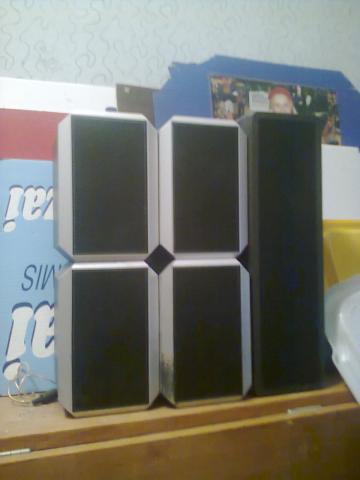 Universum vokiski garsiakalbiai, keturi, galia kiekvieno tarp 30W iki 60 W galios.. Impedancas (varzha): 8 Ohm (omai); penktoje centrineje koloneleje 3 garsiakalbiai (centrine kolonele 120 W galios irgi 8 omai)