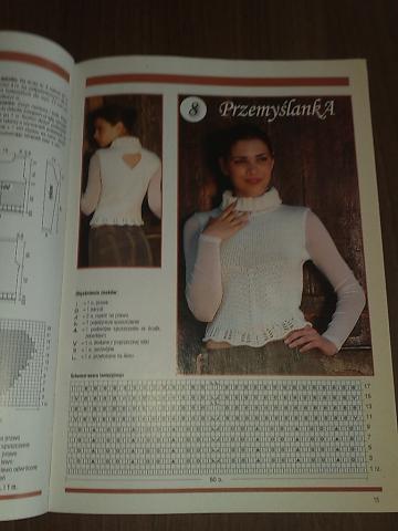 Žurnalas mezgimo mėgėjoms - įvairūs megztukai ir šalikai. Mezgimas virbalais, keletas detalių megztos vąšeliu. Nuotraukos, aprašymai ir atlikimo schemos. Lenkų kalba. 32 psl.