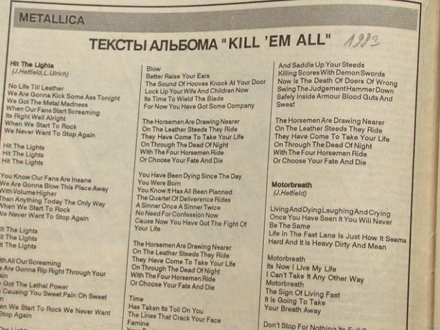 Išleistas 1992m. Visas žurnalas skirtas Metalikai, greičiausiai dėl jų tuomet būsimo apsilankymo Rusijoje. Deja nėra viršelio. Bet šiaip viskas neblogo stovio. Yra grupės narių aprašymai, dainų tekstai ir dar daug visko. Rusų kalba.