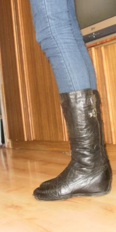 Odiniai žieminiai batai pirkti URPĖJOJ, parašyta. kad 40 dydis, bet manau labiau tiktų 39, nors čia priklauso nuo kojos ar kojinės storumo. Padas yra persiūtas, ant nedidelės platformos su šiltu kailiuku viduje.