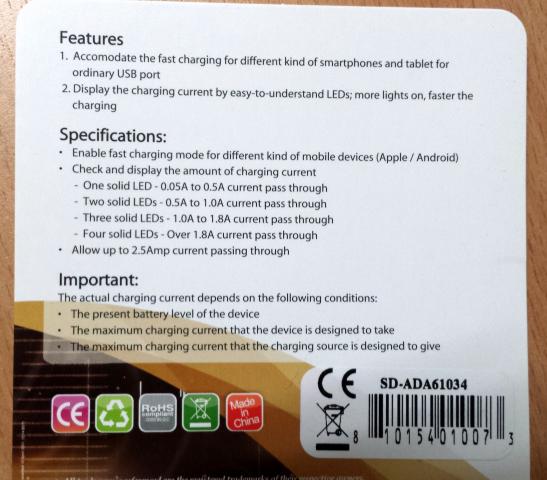 Visiškai naujas Įkrovimo srovės stiprumo matuoklis per USB. Syba Usb Smart Charging Adapter: https://www.amazon.co.uk/gp/product/B0178F85AG/ref=oh_aui_detailpage_o00_s00?ie=UTF8&psc=1 861241261