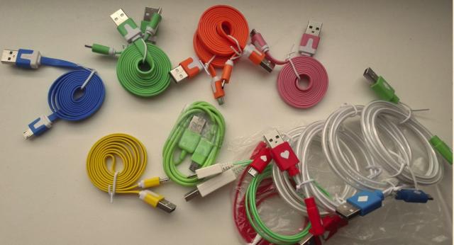 ivairus usb laidai, ivairiu spalvu, igiai 0.8m ir 3 metru. , ivairiems telefonams.sakykit norima spalva, turiu standartiniu usb ir iphone. siuo metu turiu zalia melyna raudona svieciancius, 2 eurai paprasti laidai, svieciantys 4, ikrovimas ir DATA SYNC