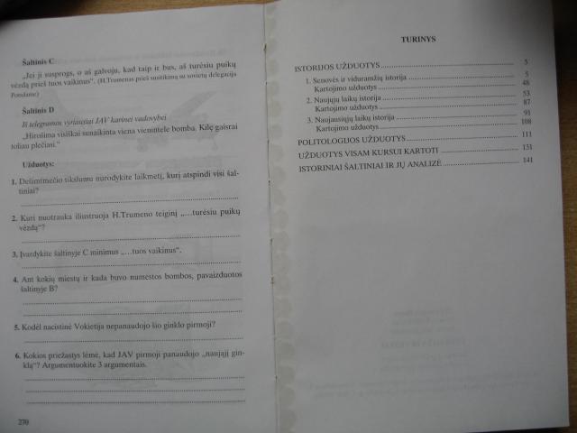 Tai istorijos ir politologijos užduotys 11-12 kl. moksleiviams, norintiems geriau pasiruošti istorijos valstybiniam egzaminui, daugybė testinių užduočių, žemėlapių, sudėtos ir ankstesnių metų valstybinių egzaminų užduotis. Pridedu ir nuotrauką, kurioje matyti turinys ;)