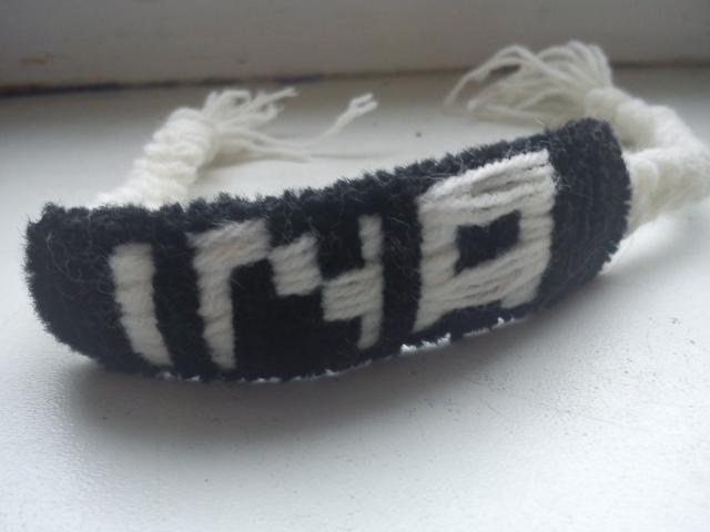 Uzsakoma apyranke is siulu, su betkokiu uzrasu: vardu, pravarde ir pan. spalvas fono ir raidziu nusistatote patys, kiekviena apyranke kainuoja 1.5lt jei mainyt tai mainyciau i sukneles, batus 39 dydzio, rankines, papuosalus ir t.t. :)