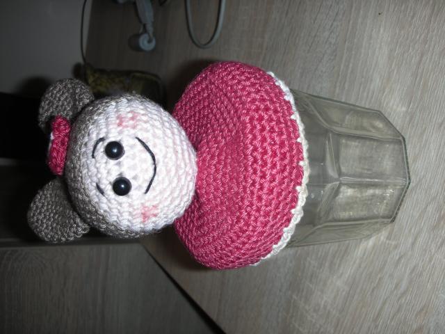 Vaikams skirtas užsukamas stiklainiukas, ant užsukamo dangtelio pritvirtintas rankų darbo mezginys (veidukas), gavom dovanų, bet neturim kur panaudoti, gal suras naują šeimininką:)