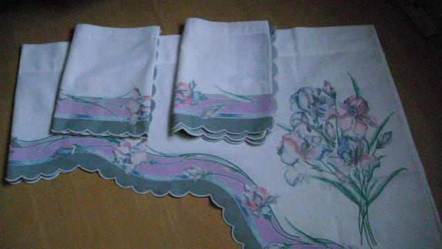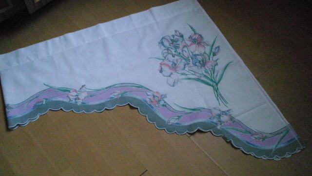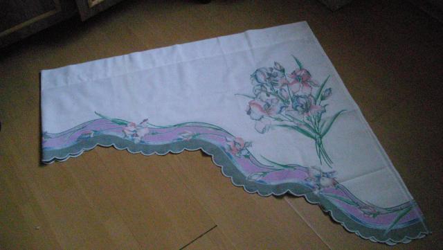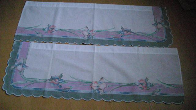 Naujos užuolaidos langui.Dydis:Viršutinės užuolaidos: Plotis-198cm;Aukštis kraštuose po 89cm;siauriausioje vietoje(vidurys)-40cm;Mažųjų užuolaidėlių:Ilgis-99cm;Aukštis-33cm;Yra atlenkimai įverti raišteliams užuolaidų pakabinimui.