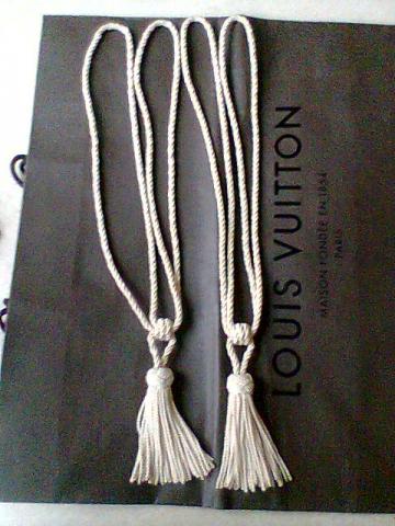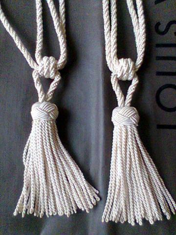 Užuolaidų aksesuaras, vien tik kutas yra 10 cm. Visos užuolaidų prilaikymo virvelės ilgis su kutu yra 40 cm. smelio spalvos