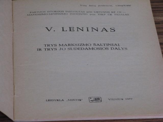 V.Leninas trys marksizmo šaltiniai ir trys jo sudedamosios dalys