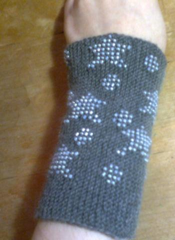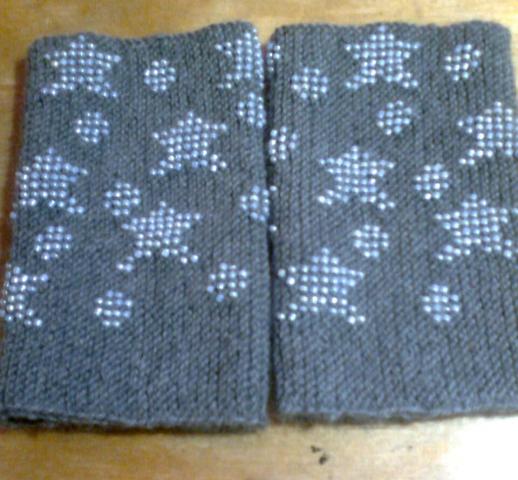 Rankų darbo žvaigždėtos riešinės. Dekoruotos melsvos spalvos karoliukais.