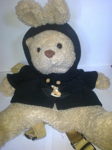 Meškutis, apsimetantis kiškiu uždėjus kapišoną - kuprinė