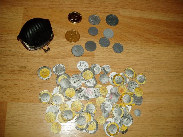 Piniginė guminė,monetos plastikinės ir popierinės,už viską 2€